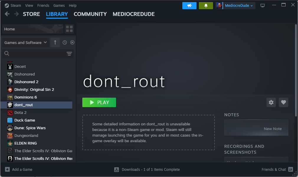 Now to launch the game, find "dont_rout" in your Steam library and click "Play"